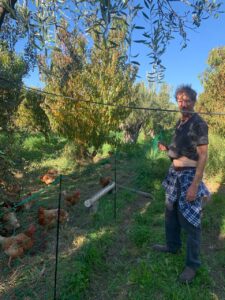El proyecto, llevado adelante por Adam y Laura, combina la producción de huevos, aceite de oliva, frutas y verduras, priorizando la salud del suelo, la biodiversidad y el bienestar animal.Durante esta primavera, los olivos se encuentran en plena floración y los almendros muestran una gran carga de frutos.