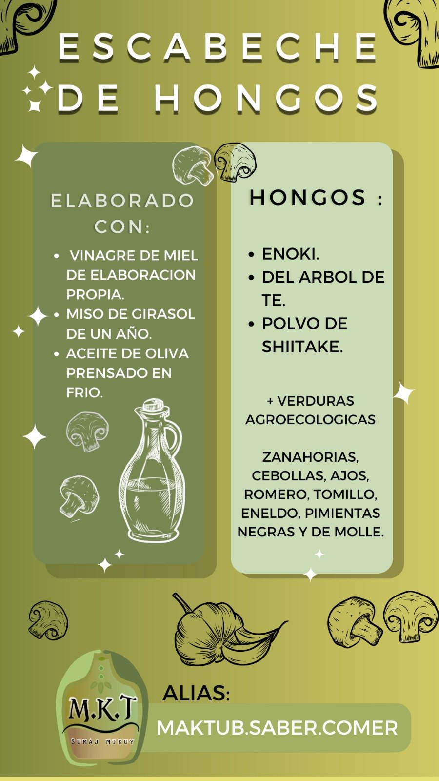 Escabeche de Hongos x 400g aprox. «Maktub»$ 13.000,00 Escabeche de Hongos x 400g aprox. "Maktub" cantidad Añadir al carrito Categoría: Almacén Descargáte el catálogo Descripción Descripción ¿Por qué elegir el tofu de Maktub? Productos relacionados GHEE «Hernan Robles» x 360 ml $ 12.500,00 Azucar mascabo AEC x kg «:» $ 4.900,00 Harina centeno integral *Don Paisa* ORG x kg «:» $ 5.600,00 Arroz Integral *Caupolican* x kg $ 2.300,00